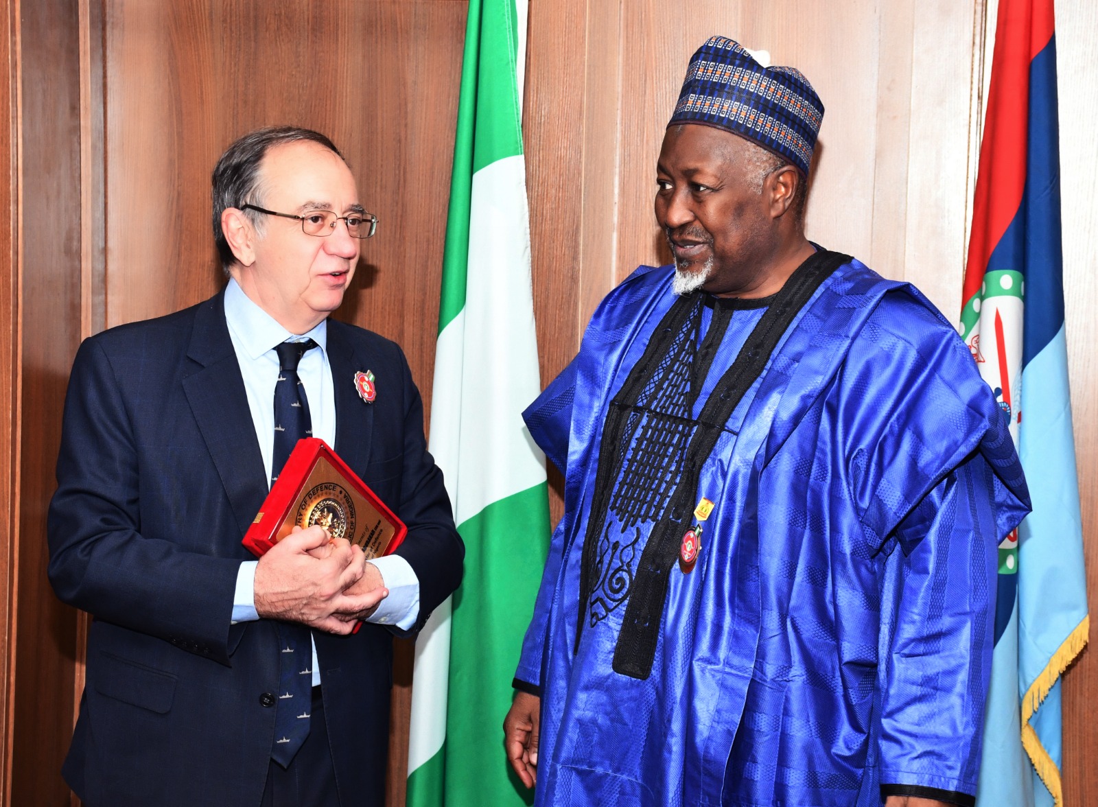Photo Speak: The Honourable Minister of Defence, Mohammed Badaru Abubakar CON, mni received in audience the Ambassador of Spain to Nigeria, Mr Juan Ignacio Sell at Ship House, Abuja.