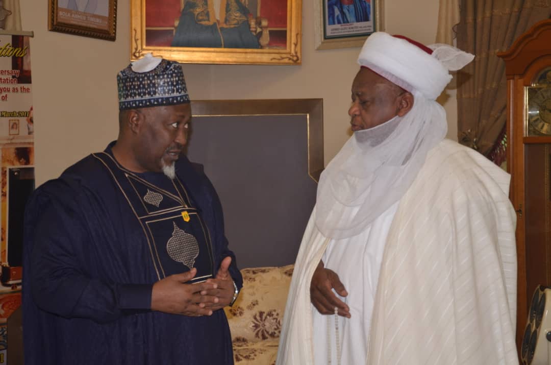 IN A COLLABORATIVE EFFORT AT FIGHTING INSECURITY IN NORTH WEST, THE HONOURABLE MINISTER OF DEFENCE, H.E. MUHAMMED BADARU ABUBAKAR CON, mni, VISITED THE SULTAN OF SOKOTO, HIS EMINENCE ALHAJI MUHAMMADU SA’AD ABUBAKAR AND THE DEPUTY GOVERNOR OF SOKOTO STATE, H.E. ALHAJI IDRIS MOHAMMED GOBIR TO SOLICITE FOR THEIR SUPPORTS IN THE FIGHT AGAINST INSURGENCY IN NORTH WEST OF NIGERIA.