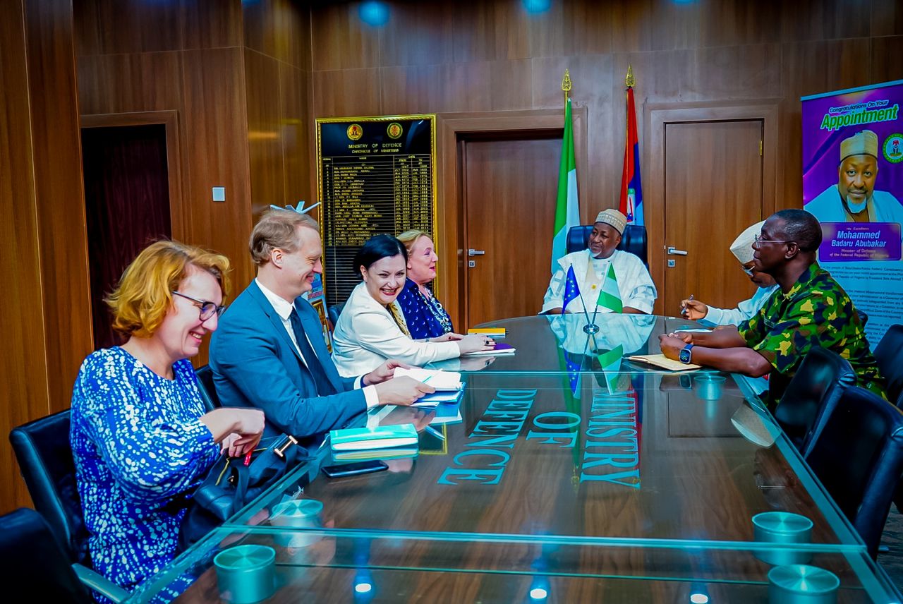 THE HONOURABLE MINISTER OF DEFENCE, H.E. MOHAMMED BADARU ABUBAKAR, CON, mni, RECEIVED IN AUDIENCE,THE EU SPECIAL REPRESENTATIVE FOR THE SAHEL, Ms. EMMANUELA C. DEL RE AND THE EU AMBASSADOR TO AFRICA, H.E. AMBASSADOR SAMUELA ISOPI ON FRIDAY, 5TH JULY 2024 AT SHIP HOUSE, ABUJA.
