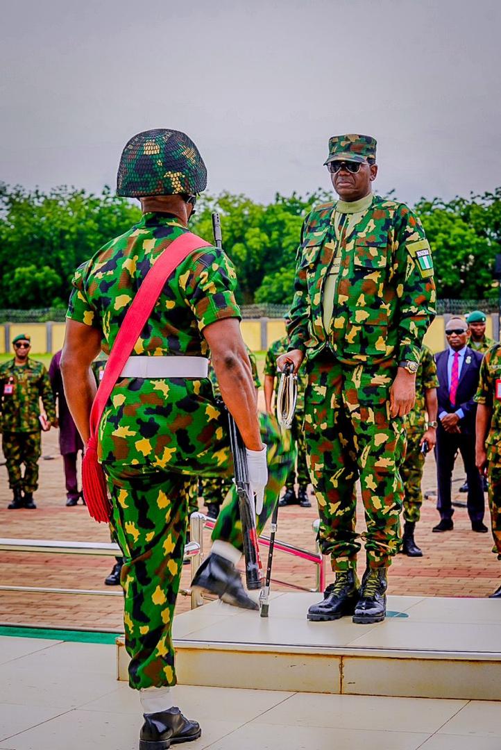 THE MINISTER IS ACCOMPANIED BY THE CHIEF OF DEFENCE STAFF, GEN CG MUSA OFR, CHIEF OF DEFENCE INTELLIGENCE, MAJ GEN EMMANUEL UNDIANDEYE, GOC DIV 8, BRIG GEN IA AJOSE AMONGST OTHERS. HE IS CURRENTLY TOURING MILITARY FORMATIONS