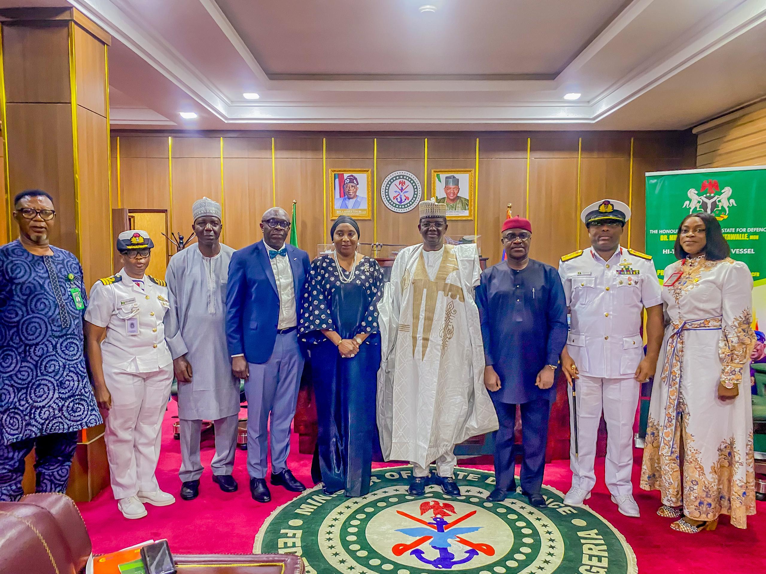 THE HONOURABLE MINISTER OF STATE FOR DEFENCE H.E. DR. BELLO MUHAMMED MATAWALLE MON HAD AUDIENCE WITH THE MEMBERS OF THE INTER-MINISTERIAL COMMITTEE FOR THE REVIEW OF THE MEMORANDUM OF UNDERSTANDING (MoU) ON AFRICAN UNION STRATEGIC SEALIFT CAPACITY LED BY AMBASSADOR INNOCENT A. IWEJUO ON TUESDAY, 10TH SEPTEMBER 2024 IN SHIP HOUSE, ABUJA.