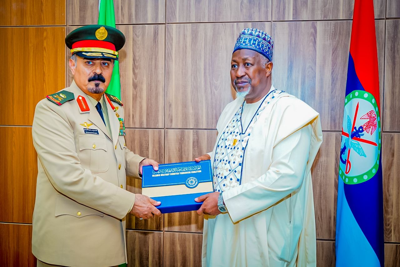 THE HONOURABLE MINISTER OF DEFENCE H.E. MOHAMMED BADARU ABUBAKAR CON, mni HAD AUDIENCE WITH ISLAMIC MILITARY COUNTER TERRORISM CENTRE LED BY THE SECRETARY GENERAL, MAJOR GENERAL MOHAMMED BIN SALEEM AL-MOGHIDI ON MONDAY, 28TH OCTOBER 2024 IN SHIP HOUSE ABUJA.