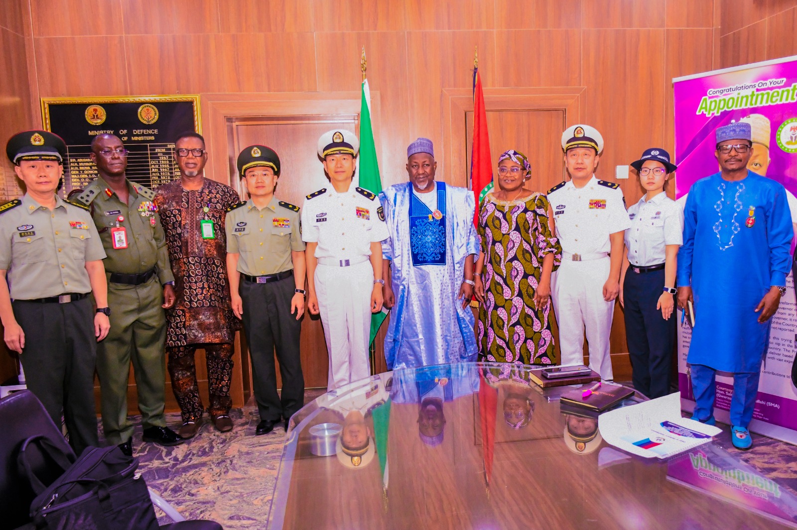 THE HONOURABLE MINISTER OF DEFENCE H.E MOHAMMED BADARU ABUBAKAR CON MNI RECEIVED IN AUDIENCE THE VICE PRESIDENT AND DEAN OF THE NATIONAL DEFENCE UNIVERSITY OF THE CHINESE PEOPLES LIBERATION ARMY ( PLA NDU) REAR ADMIRAL HU GANGFENG AND HIS ENTOURAGE WHO ARE PARTICIPANTS OF NATIONAL DEFENCE UNIVERSITY OF THE CHINESE PEOPLES LIBERATION ARMY.
