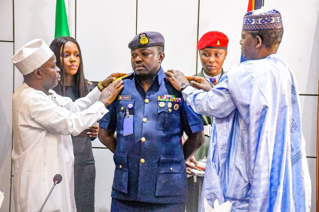 THE HONOURABLE MINISTER OF DEFENCE H.E. MOHAMMED BADARU ABUBAKAR CON, mni AND THE HONOURABLE MINISTER OF STATE FOR DEFENCE H.E. DR. BELLO MUHAMMED MATAWALLE MON ON TUESDAY, 21ST OCTOBER 2025 DECORATED THE NEWLY PROMOTED SENIOR MILITARY OFFICERS OF THE MINISTRY OF DEFENCE AT A COLOURFUL CEREMONY AT THE MINISTRY’S HEADQUARTERS, ABUJA.