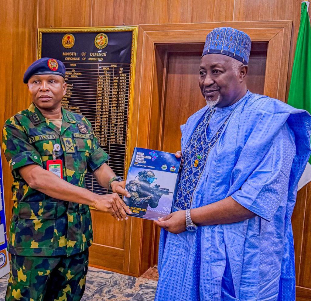 The Honourable Minister of Defence H. E. Mohammed Badaru Abubakar CON mni on Thursday 27th November, 2025 received the Committee of the 2026 African International Defence Exhibition (AFRIDEX) on a Courtesy visit in his office, at Ship house Abuja.