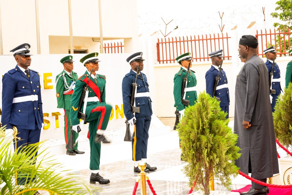 AS PART OF HIS FAMILIARIZATION VISIT TO MILITARY SERVICES AND FORMATIONS UNDER THE MINISTRY OF DEFENCE, THE PERMANENT SECRETARY, MR. RICHARD PHEELANGWAH, VISITED DEFENCE SPACE ADMINISTRATION AND WAS WELCOMED BY MAJOR GENERAL PHILIP O. ILODIBIA, THE CHIEF OF DEFENCE SPACE ADMINISTRATION ON THE 8TH OF APRIL, 2026.